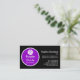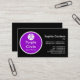 Una plantilla de tarjeta de perfil/negocio con un panel circular de color morado blanco diseñado para los detalles y el logotipo de la Compañía. El logo usado aquí es de Zodiac BT, que es una de las fuentes de imagen de Zazzle. Por supuesto, se puede cambiar, reemplazar o borrar y el texto se puede cambiar de tamaño y/o realinear pulsando el botón personalizar. La parte posterior de la tarjeta se ha dejado en blanco utilizando el mismo color de fondo que la parte frontal, que se puede personalizar aún más si se desea.