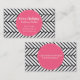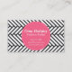 Diseño llamativo de modelo blanco y negro de la raspa de arenque con un círculo rosado brillante del efecto de la puntada para la personalización. Esta tarjeta de visita con su opción intrépida de colores y la fusión de elementos es ideal para cualquier persona que esté buscando un diseño de la tarjeta de visita en los campos de la moda, de la creatividad o de los artes. El diseño se puede personalizar fácilmente a sus detalles. El dorso incluye el espacio para una cita personal o inspiradora o un mensaje de comercialización. Diseñado por Doodle oxidado.