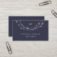 Estas tarjetas de visita elegantes ofrecen un fondo azul de medianoche oscuro, con una falsa guirnalda circular de plata colgando abajo desde arriba de la tarjeta. Personalice con toda su información en texto gris claro.