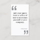 Marcas de presupuesto grandes enmarcan la parte delantera de este diseño de tarjeta de visita para su cita o frase deseada. Amplio espacio en el reverso para tu información de contacto. © 1201AM DESIGNS