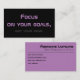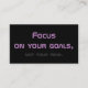 Esta plantilla personalizada de tarjetas de visita premium está diseñada en un elegante minimalismo centrado en el aspecto más importante: su cliente! El fondo negro minimalista en combinación con el texto de color gris y el mensaje violento encaja perfectamente con los negocios de salud mental como los ponentes motivacionales, entrenadores de vida, entrenadores de salud mental, sanador de energía espiritual y naturopath de salud holístico con experiencia profesional. El mensaje positivo "Concéntrate en tus objetivos, no en tu miedo" muestra a tus clientes "en pocas palabras" la forma en que puedes apoyarlos y ayudarlos a desarrollarlos y transformarlos en una forma de vida más positiva. ¡Su salud mental, sus servicios motivacionales y de bienestar mental son la clave de su éxito! Eche un vistazo a esta plantilla de tarjetas de visita Premium de personalizable completo con un fondo negro minimalista en combinación con texto de color gris y el diseño de mensajes de enfoque violeta en un ambiente 100% positivo. Personalice el texto, el estilo, los colores y los tamaños para que se ajusten a sus necesidades. La tarjeta de visita perfecta para empresas profesionales. Muestra a tus clientes la actitud positiva de vida a la que eres adicto en tu tarjeta de llamada. Si tienes una pregunta de diseño o quieres ver este diseño en otro producto, por favor, no dudes en contactarme!
