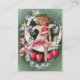 Una tarjeta de visita hermosa del vintage que ofrece una querube hermosa en una luna de la hoz rodeada por las flores, pintadas por el ilustrador americano/el artista comercial Ellen Hattie Clapsaddle.