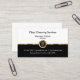 Utilice esta tarjeta profesional de servicio de limpieza para una empresa de limpieza residencial o de oficina con su elegante plantilla de diseño en oro, negro y blanco con plantillas de texto para el personalizar en línea.