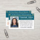 Expresar gratitud a los clientes con tarjetas de visita de agradecimiento personalizado. Una manera perfecta de mostrar su aprecio e invitar a futuras colaboraciones. Esta plantilla editable se puede personalizar con su foto de perfil, nombre, credenciales, área de servicio, detalles de contacto y un mensaje personal de agradecimiento. Añada el logotipo de su empresa o la marca de certificación para la marca, y dirija fácilmente a sus clientes a su sitio de revisión mediante un código QR escaneado para alentar Este diseño clásico tiene texto completamente personalizable para adaptarse a su marca comercial y clientela. Perfecto para notario público, agente de firma de préstamos, notario certificado de entrega de confianza (CNTDA), notario móvil, servicio de apostilla u otra profesión legal. Colores impresos: color verde azulado oscuro, blanco y dorado. Compra la colección en línea para obtener ideas de productos más populares y suministros diseñados para notarios!