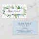 Esta tarjeta de visita clásica de flores blancas es perfecta para un pequeño empresario, un consultor, un estilista y mucho más. El elegante diseño floral presenta rosas blandas de marfil y blanco, además de peonías con toques de flores de acuarela azul perwinkle y follaje verde.