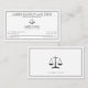 Lawyer business cards in a stylish, elegant template design with scales of justice logo symbol.
