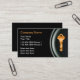Elegante diseño moderno de tarjetas de visita con un gráfico de clave dorada y diseño clásico de tarjetas de visita para un localizador independiente con licencia, locksmith que se especializa en el servicio de bloqueo, o utilice este diseño para temas de seguridad.