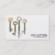 Una plantilla de tarjeta de visita con una disposición de claves. Información de la empresa en la parte delantera, con nombre y datos de contacto en el reverso con una repetición del motivo de las teclas. Se puede personalizar de muchas maneras adecuadas para muchos tipos de negocios, en particular los propietarios, la administración de propiedades, agencias de alquiler. herreros, seguridad, etc.