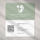 A modern, minimalist business card designed for cleaning professionals. With a sage green background and a white silhouette illustration on the front, easily customize the white typography with your business details. The reverse of the card has a white background and a simple, easy to customize layout with space for your contact details as well as a QR code - perfect for linking directly to your booking page, website or customer reviews.