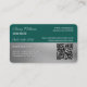 Convierta esta lujosa y personalizable tarjeta de visita en un lugar inolvidable. La parte delantera muestra una impresionante representación de un coche moderno en verde y plateado Verde azulado metálico. El nombre de negocio, "Concepto de Personalizados de coches", se representa de forma elegante en una combinación de sans-serif y tipos de letra con un efecto grabado. La parte trasera cuenta con una elegante disposición de acero verde y gris Verde azulado con campos de personalizable completos y un código QR para un compromiso en línea sin fisuras. Ya sea que se especialice en personalización, detalles, ventas o reparación de coches, esta tarjeta de lujo dejará una marca memorable.