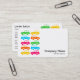 Una plantilla de tarjeta de perfil/negocio con un motivo compuesto por diez símbolos de coche en cinco colores diferentes y viajando en direcciones alternas. El nombre de la empresa y el tipo de negocio en la parte delantera se equilibran con el motivo a la izquierda. Nombrar y todos los demás contactos al revés con el motivo a la derecha. Listo para ser personalizado con sus detalles. Podría ser adecuado para una empresa de taxis, escuela de conducción o cualquier negocio relacionado con el tráfico o el automóvil.