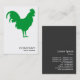 Una plantilla de tarjeta de visita con un sencillo símbolo de silueta de gallo. Información de la empresa en la parte delantera con el nombre y los datos de contacto en la parte posterior. Se puede adaptar a una variedad de negocios y otros usos. También se puede adaptar para usar más como tarjeta de perfil eliminando o intercambiando los datos de la empresa y de su nombre personal.