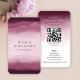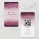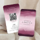 Diseño moderno de tarjeta acuática con fondo de color rojo burdeos degradado, tipografía elegante y espacio para el código QR personalizado. Crea tarjetas profesionales escaneables de código QR para tu diseño, fotografía, belleza o cualquier otro negocio usando esta plantilla de tarjeta de llamadas de pincel de agua rosa oscuro. Puedes añadir cualquier enlace al código QR para promocionar tus cuentas de redes sociales, sitios web o una oferta especial.
