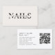 Tarjeta de visita moderna, beige, QR Code - disponible en 18 colores. Este diseño elegante y profesional de tarjetas de visita presenta una tipografía audaz y un código QR personalizado, perfecto para los emprendedores digitales primerizos de hoy. Ideal para los profesionales de la belleza, los técnicos de uñas, los artistas de lash, los peluqueros, los maquilladores y los expertos en bienestar. Personalizar fácilmente tu nombre, título, detalles de contacto y código QR para enlazar a tu sitio web, página de reserva o perfil de Instagram. Imprimido sobre un material de cartón de alta calidad, este diseño está disponible en 18 impresionantes opciones de color (negro, rosa rubor, blanco, beige, etc.) para que se adapten a su marca o estilo de salón. Manténgase conectado con una tarjeta que sea