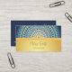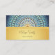 La parte superior tiene una mandala geométrica moderna de color azul dorado. En la parte inferior se muestra un campo de texto falso en Relieve metalizado dorado con un nombre personalizado en un guión manuscrito caligráfico elegante. Perfecto para profesores de yoga, maquilladores, salones, boutique, spa y masajes, profesores de masaje...