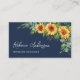 Tarjeta profesional con hermosas hojas de eucalipto y girasoles brillantes. Añade tu nombre y datos de contacto para hacer una primera impresión duradera.