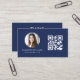 Tarjeta De Visita Código QR azul de la Marina Foto Monograma Minimal