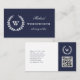Tarjeta De Visita Código QR blanco azul clásico monográfico