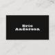 Un fondo negro clásico. Personalice y agregue su nombre al frente. Atrás: Plantillas para tu nombre, título, número de teléfono, dirección de correo y sitio web, código QR a tu sitio web o cuenta de medios sociales. Letras blancas.
