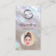 Esta elegante tarjeta de visita de lujo presenta un diseño de nácar iridiscente y una elegante letra manuscrita. En el anverso hay un logotipo personalizado y una foto. En el reverso hay un código QR escaneable y una plantilla personalizada para nombre, dirección y redes sociales. Esta tarjeta de visita profesional con glamour es perfecta para salones, artistas de maquillaje, joyerías y más.