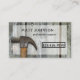 Tarjeta de visita con diseño de madera con martillo. El rectángulo alrededor del número de teléfono es una forma personalizado y se puede ajustar a sus necesidades (o borrar). El código QR también es opcional y personalizable. Hermoso para carpintero profesional, trabajador de la madera o hombre de mano.