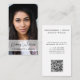 Tarjeta profesional de negocios con tu foto con tu nombre en un guión moderno de moda y tu profesión o título en letras simples y limpias. En la parte posterior, agregue la dirección URL de su sitio web para crear un código QR escaneado y personalizar con su información de contacto.