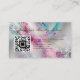 Tarjeta de Presentación con Código QR Azul Rosa Glitter Brillante Holográfico de Tinta Alcohol Pastel Marmoleado Moderno Elegante