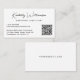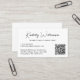 Tarjeta profesional que incluye su nombre en un guión moderno de moda y su título e información de contacto (como correo electrónico, números de teléfono, nombre en firme y dirección postal) en letras simples y limpias. Ingresa una dirección URL para crear un código QR escaneado vinculado a tu sitio web, perfil de medios sociales u otra plataforma que muestre tu trabajo, facilitando que otros exploren tu experiencia. Personalice el texto adicional en la parte posterior o deje en blanco.