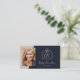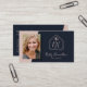 Elegante y profesional agencia inmobiliaria tarjeta de visita con foto. Logo moderno de realtor en el frente con letra de guión en rosa rubor y fondo en color azul marino. Añadir su código QR