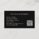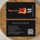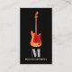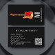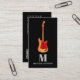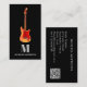 Diseño de guitarra eléctrica con protector de escotilla rojo en un fondo negro con nombre de monograma personalizado y código QR. Agregue sus propios detalles utilizando la plantilla para crear una tarjeta profesional. El diseño perfecto para guitarristas, músicos y profesores de música. Obra de arte original clásica y simple, y tipografía por la artista Catherine Sweetman