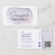 Haz una declaración con esta tarjeta de presentación con destellos de lavanda y lila. Sus tonos púrpura soñadores y efecto de destellos se combinan para un diseño suave pero sofisticado perfecto para creativos, freelancers y emprendedores. Fácilmente personalizable con un código QR para compartir sin problemas redes sociales, sitios web o información de contacto. Un toque chic y profesional para la conexión en red moderna.