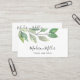Esta moderna tarjeta de visita es perfecta para un pequeño empresario, consultor, estilista y más. El diseño botánico presenta hojas de acuarela en tonos verdes y tipografía de escritura elegante. Personalizable con facilidad con sus detalles y código QR. Utilice la Herramienta de diseño para cambiar el tamaño, estilo o color del texto. Acuarela original © Michele Davies.