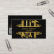 Un fondo negro, con unas falsas herramientas de oro. Personalice y agregue su nombre comercial y un texto al frente. Cartas doradas Atrás: Plantillas para su nombre, título, número de teléfono, correo y dirección del sitio web. Agregue su propio código QR a su sitio web o cuenta de medios sociales.