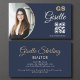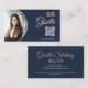 Una elegante tarjeta de visita en tonos azul marino profundo y dorado cálido, con tu foto, iniciales en monograma y un escandaloso código QR. Perfecto para los inquilinos que quieren elevar su marca con detalles de lujo y comodidad digital. Nota de personalización opcional para descendientes: para nombres con letras como g, y o j, reduzca ligeramente el tamaño del guión para evitar la superposición con el código QR.