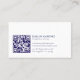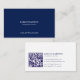 El elegante, sencillo y minimalista diseño de la tarjeta de visita de un abogado de inmigración presenta tipografía personalizada en azul y blanco sobre un fondo azul oscuro y blanco. Código QR.