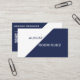 Las tarjetas de presentación geométricas modernas en azul marino y blanco incluyen tu nombre en la parte delantera en texto en blanco y blanco sobre la marina. La parte posterior incluye un código QR de personalizable, el nombre de su trabajo, especialidad o empresa, y la información de contacto sobre un patrón de bloque de color azul oscuro y blanco invertido al frente. Personalice el código QR con el enlace de su portafolio o sitio web y agregue su texto en la barra lateral. Vea más tarjetas de visita personalizado en la colección de Artes Rocklawn. Copyright ©Claire E. Skinner. Todos Los Derechos Reservados.