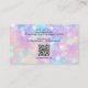Moderna y de moda, esta tarjeta holográfica de negocios incluye su nombre o nombre de negocio en la tipografía de guiones con un elegante fondo de purpurina opal iridiscente. Es perfecto para profesionales de la industria de la belleza y más allá (especialista en uñas, técnico en uñas, manicurista, maquillador, dueño de salón de belleza, peluquero, esteticista, etc.). Puedes personalizar el frente con tu nombre y título (o dirección/ubicación del sitio web) y agregar tu información de contacto (incluyendo la dirección del sitio web y las cuentas de medios sociales), el código QR escaneado en la parte posterior.