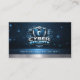 Esta tarjeta de presentación moderna de ciberseguridad presenta un diseño audaz y de alta tecnología creado para profesionales de TI, analistas de seguridad, probadores de penetración, piratas informáticos éticos y especialistas en protección digital que desean una primera impresión fuerte y confiable. La parte delantera muestra un escudo metálico elegante con un icono de cerradura, rodeado de gráficos de placa de circuito y líneas digitales limpias que comunican instantáneamente protección de datos, seguridad de red y tecnología avanzada. Un poderoso eslogan de cuatro palabras se encuentra debajo del encabezado principal, lo que le da a la tarjeta un aspecto premium y autoritario que se destaca en la industria de la ciberseguridad y los servicios de TI. El fondo oscuro, los acentos metálicos y la disposición futurista crean una estética pulida y profesional que refleja la experiencia en detección de amenazas, endurecimiento de sistemas, evaluaciones de vulnerabilidad y soluciones de defensa digital.
