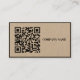 Esta tarjeta de visita incluye un código QR único que permite a los clientes potenciales acceder fácilmente al sitio web de la empresa y a la presencia en línea. También cuenta con una letra mínima de escritura negra rústica para dar una impresión duradera. La tarjeta está impresa en un material de tarjetas de alta calidad para garantizar la longevidad.