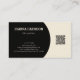 Tarjeta de presentación moderna en blanco y negro con logotipo y código QR