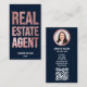 Tarjeta de visita Realtor de agente inmobiliario de retrato profesional con su foto y código QR, diseño único y moderno