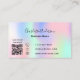 Una elegante y glamorosa tarjeta de visita sobre fondo holográfico, rosa, violeta, verde menta decorada con confeti rosa en la parte delantera y equipo de limpieza. Personaliza y agrega tu nombre, información de contacto de texto y tu propio código QR a tu dirección de sitio web.
