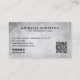 Diseño de tarjetas de visita de textura gris brillante con un fondo moderno de estilo industrial que crea un fuerte y profesional impacto visual. La parte frontal incluye el nombre de su negocio y el lema o línea de servicio, mientras que la parte posterior incluye campos editables para el nombre, el título, la dirección, la información de contacto, el sitio web, las cuentas de redes sociales y un código QR para comodidad digital. Ideal para una amplia gama de industrias, este diseño minimalista y versátil es perfecto para profesionales, consultores, creativos y emprendedores que buscan transmitir una presencia de marca segura, limpia y contemporánea.