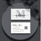 Tarjeta De Visita Código QR Monograma blanco negro elegante