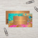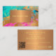 Pinceladas de pincel acrílico moderno y moderno de moda pintura abstracta en negrita color turquesa verde azulado, azul, fucsia caliente rosa y oro fino haciendo una elegante tarjeta de visita de moda femenina QR CODE con un rectángulo geométrico de cobre metálico falso monogramado para un artista de maquillaje, planificador de bodas, peluquero, estilista de moda, decorador de casa, diseñador, arquitecto, boutique propietario, político, blogger de estilo de vida, pintor. +++++++++++++++++++++ Una opción perfecta para un elegante y sofisticado aspecto. ++++++++++++++ Fácil de personalizar con el monograma de nombre de negocio o iniciales, los detalles de contacto y su propio CÓDIGO QR generado automáticamente en ambos lados!