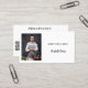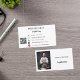 Un fondo blanco clásico. Personalice y agregue su foto, título, nombre/nombre comercial y texto al frente. Texto negro. Atrás: Plantillas para su nombre, título, número de teléfono, dirección de correo y sitio web, su propio código QR a su sitio web o cuenta de medios sociales. Iconos/cuenta de Facebook e Instagram.