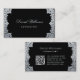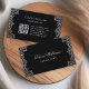 Tarjeta De Visita Código QR Plateado Negro Antiguo Escritura Ornata