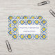 Imaginen entregar a alguien esta tarjeta de visita diseñada inteligentemente. Esto tiene un patrón de azulejos azules y amarillos. Ideal para un negocio que ofrece servicios de limpieza. El frente es sencillo, con el nombre y el servicio que se ofrece. Al revés es donde ocurre la magia. Tiene espacio para enumerar sus atributos o las habilidades o trabajos que realiza. Hay un lugar para dos números de teléfono y debajo está el código QR para enlazar a tu sitio web o incluso una página de medios sociales para tu negocio. En la parte superior estará tu llamada a la acción. Aliente a su cliente a ponerse en contacto por teléfono o por medio del enlace. Este patrón recuerda a una casa de baldosas mediterránea. Tan fresca y luminosa. El texto es de color azul como el código QR.