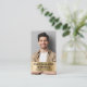Tarjeta de negocios moderna con tu foto con tu nombre y profesión tipografía atrevida en una tipografía metálica de imitación de oro cepillado. En la parte posterior, agregue su información de contacto y agregue una dirección para crear un código QR escaneado conectado a su sitio web, cartera, perfil de medios sociales o cualquier otra plataforma que muestre su trabajo, facilitando a los clientes y clientes la exploración de su experiencia.