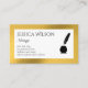 Este elegante diseño de tarjetas de visita presenta un sofisticado marco metálico dorado con un delicado acento plumínico, realzado por una imagen vectorial de una cuenca y su tintero que complementa perfectamente un código QR para un fácil acceso a sus servicios notariales. El diseño elegante y profesional crea una impresión duradera, creando una combinación perfecta de encanto clásico y comodidad moderna. La pluma y su tinta hacen de este diseño de lujo ideal también para escritores o escritores independientes para promover su actividad.